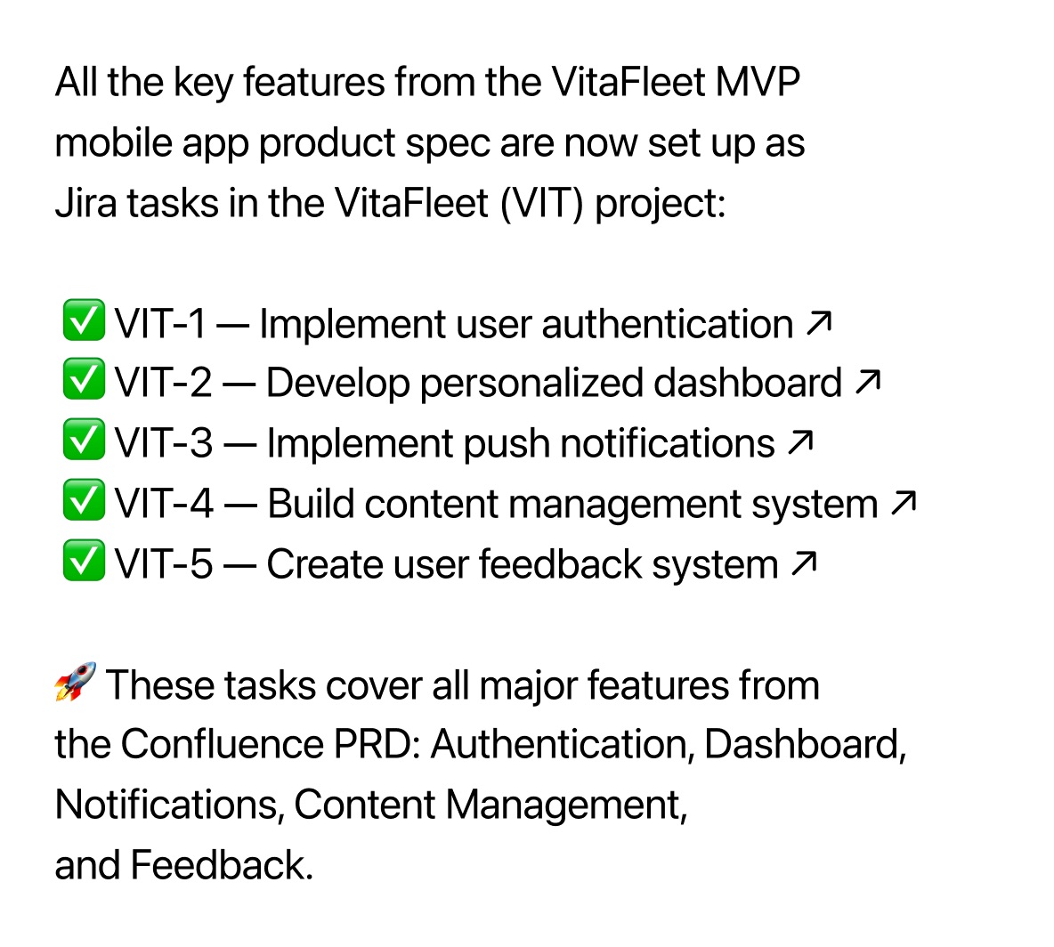 @Atlassian Rovo create Jira tasks in project Vita MVP